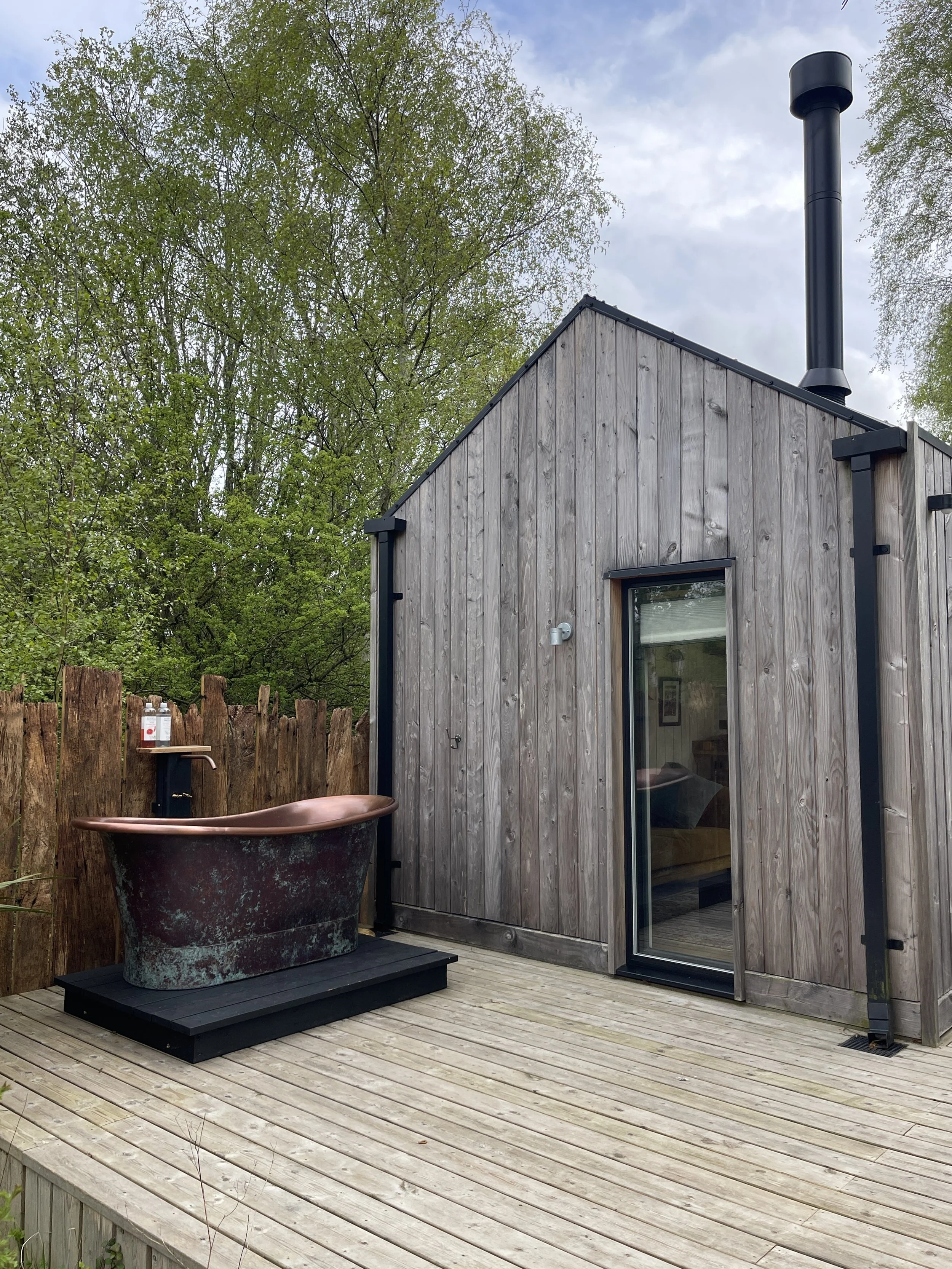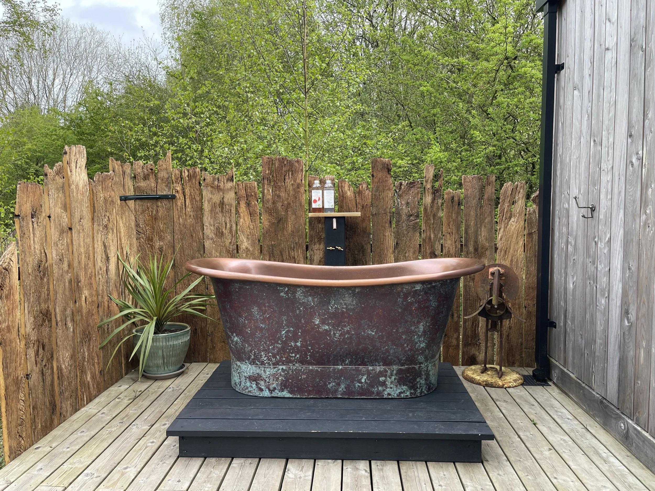 Large copper bath tub on the deck